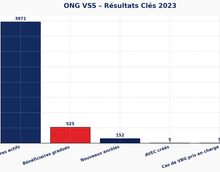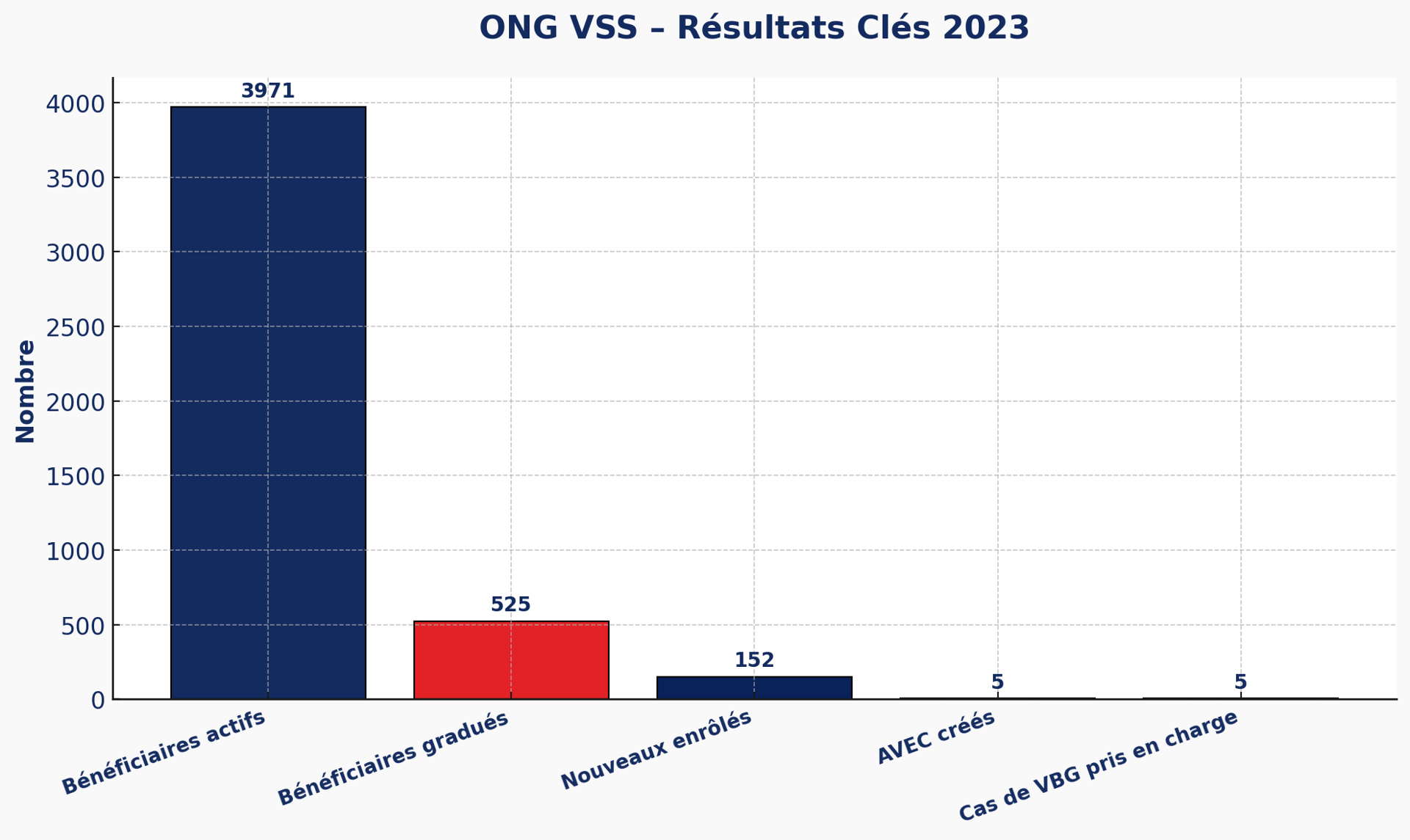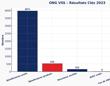 3971 bénéficiaires actifs (650 Femmes ; 204 Hommes ; 1561 filles ; 1556 garçons) à travers les VAD